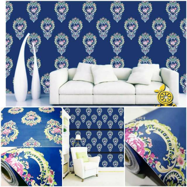 Grosir Termurah Wallpaper Stiker Dinding Ruangan Batik Biru Tua Benhur Ukuran 10meterx45cm Shopee Indonesia